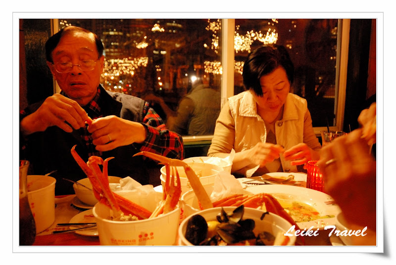 上菜後,每個都用很廉價的塑膠桶裝著,大雄媽示範完龍蝦圍兜兜的穿法後,我們每個人就開始埋頭苦幹,跟眾海鮮們的軟殼、硬殼纏鬥,感覺這個份量應該很快就清潔溜溜了,本來還跟服務生說,等會再點其他的,沒想到光是這些,我們四個人就已經吃不消啦~過癮過了頭~最後,叮噹發揮阿土星座的耐力,硬是把剩下的兩隻雪蟹腳啃完~ 還有那差點成為最後一根稻草的三隻小蝦解決~