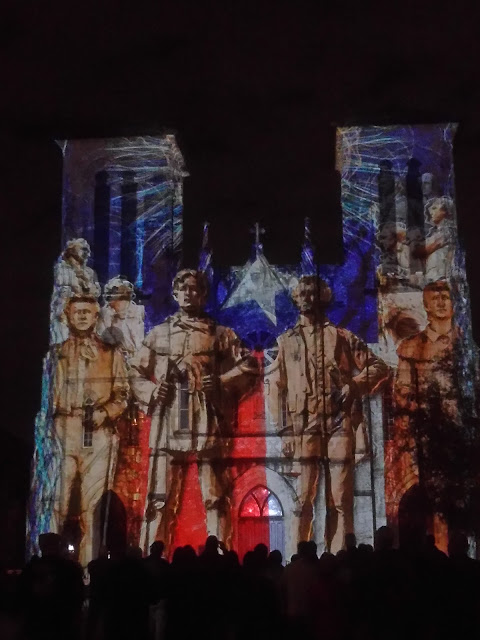 法國藝術家Xavier de Richemont 的作品,利用圖像闡述德州的歷史(不少是美國歷史,法國人看德州歷史,畢竟還是有些不同),投影在潔白的雄偉教堂整面石塊上,搭配不同的音樂,用視覺跟音樂挑動人心,引領觀眾進入他所描繪的往日時光,令人目不暇給的滿滿24分鐘,很值得觀賞。