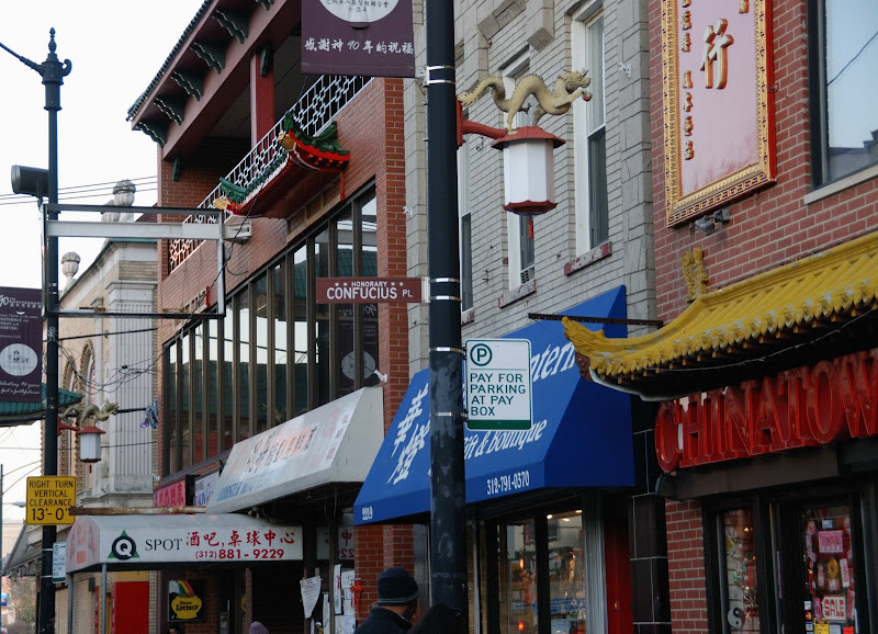 這裡交通方便, 若是開車過來, 週邊有許多停車場, 大多停得到車位, 或選擇搭 El (芝加哥地區捷運), 紅線的 Chinatown 站下車, 兩塊商圈就在幾百公尺不遠處, 這裡可以下載芝加哥 Chinatown 指南 。