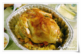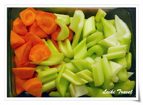 筆記:這道火雞的蔬菜會流很多湯汁,記得要用較深的容器盛火雞,湯汁可以用做煮麵的底湯,很美味喔~