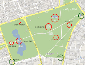 綠圈為地鐵站,紅圈為兩座公園特殊景點