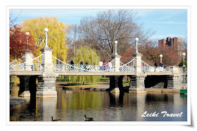 花園最舒服放鬆的景色莫過於在灑滿陽光的湖面旁野餐了,夏天的時候,天鵝船有開放給遊客搭乘,湖面積雖然不大,但是乘船經過世界上最小的懸吊橋 - Lagoon Bridge,也別有一番詩意,聽說,這座橋是仿造紐約布魯克林大橋所做的迷你版。現在麻州政府提出拍影片減稅的優惠,電影導演可以考慮來這裡取布魯克林小橋當景~ 省交通費又省稅喔~