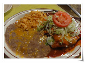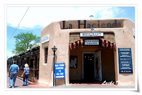 除了商店,這裡的餐廳也不少,既然來到新墨西哥,當然就得試試新墨西哥的料理,食物總是最能表現民族文化的一環,我們挑了轉角的 La Hacienda 試試。(Hacienda的意思是指西班牙語系國家的大農莊)