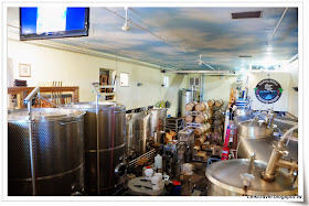 品酒室後面走道是兩層樓高的釀酒廠