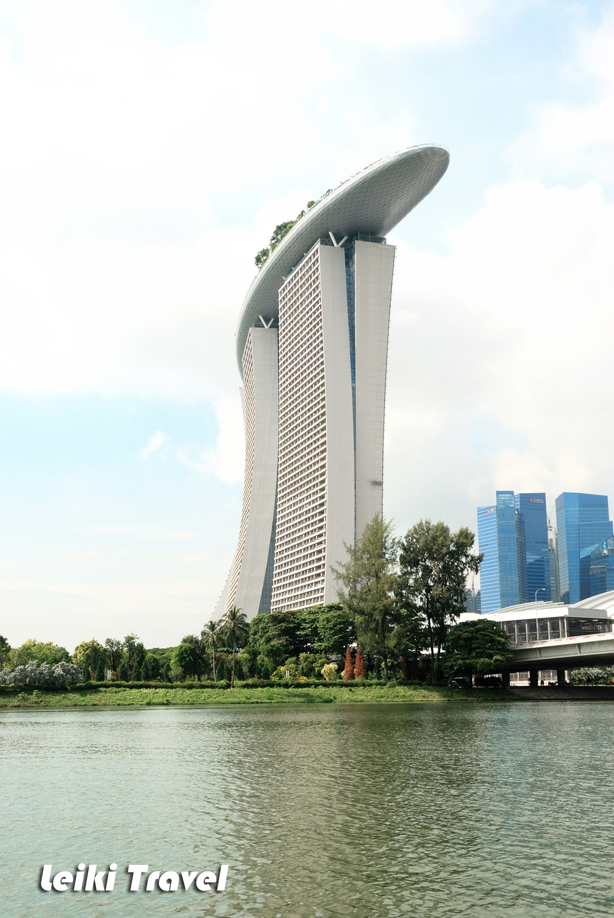 兩旁階梯是遊客白天納涼,晚上看金沙燈光秀的好地點 船長開到魚尾獅公園會稍作停留,掉頭後會再停留一次,讓每位遊客都能拍到魚尾獅正面 稍縱即逝的正面照 新加坡的天際線也是一景 - 金沙酒店 Marina Bay Sands Hotel