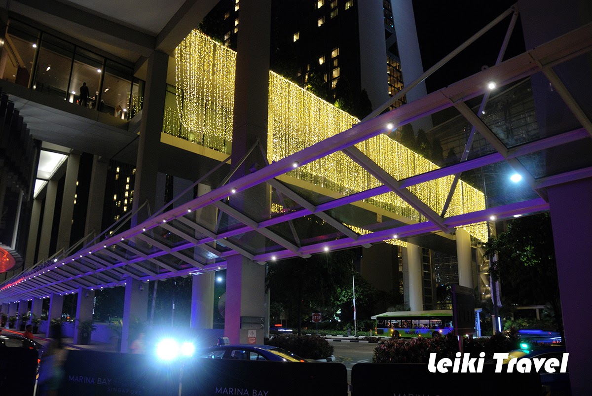 金沙酒店跟濱海灣花園隔著一條很大的公路 Sheares Ave. ,行人無法穿越,所以從地鐵站 DT16 Bayfront 到濱海灣花園有兩條路,一條是地下道,一條是空橋(金沙商場-金沙酒店-濱海灣花園)