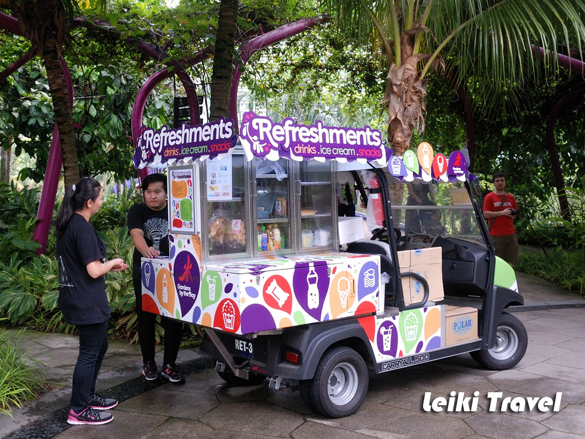 遠遠就看見擎天樹,再往前是溫室花園接駁車搭車處,SGD$3/人 |