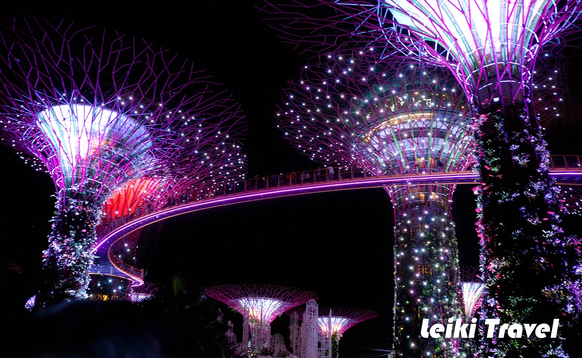 擎天樹叢是花園的重心,白天可以在 22 公尺高的樹間 OCBC 空中步道眺望和近距離接觸吸收太陽能,晚上綻放燈光的樹裝置。到夜晚時分,找個好地點觀賞擎天樹叢的音樂燈光秀(19:45 & 20:45)。