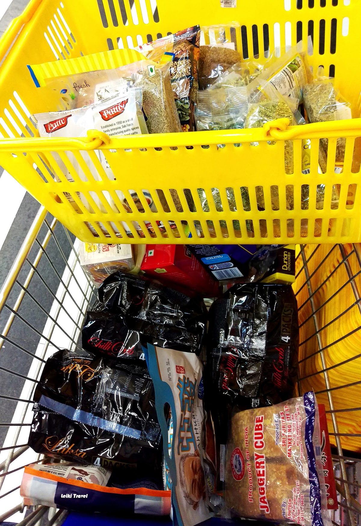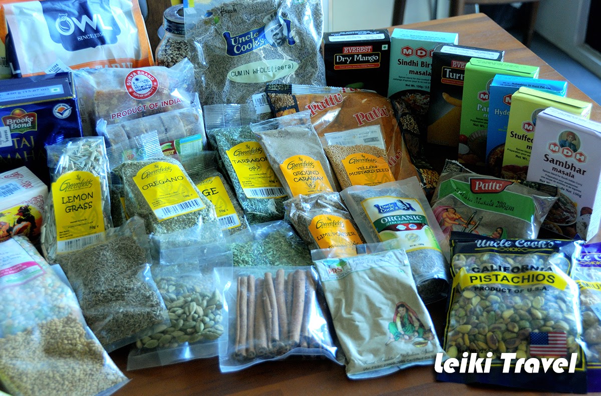 最後是香料區(差點就錯過了,因為它在飲料冰櫃區之後,還好我就是不相信印度超市怎麼可能沒有賣香料,硬是要走到飲料區後瞧瞧,果然....),看到那一大區擺了世界各國的香料,開心死了~天堂天堂天堂來著! 唷呼~種類繁多,品牌眾多,眼花撩亂,徒手拿不動,立馬去找推車,逛得不亦樂乎,可憐了阿木,等我等到腳都痠了,光是這一區也花了我 40 分鐘,真是太過癮了。